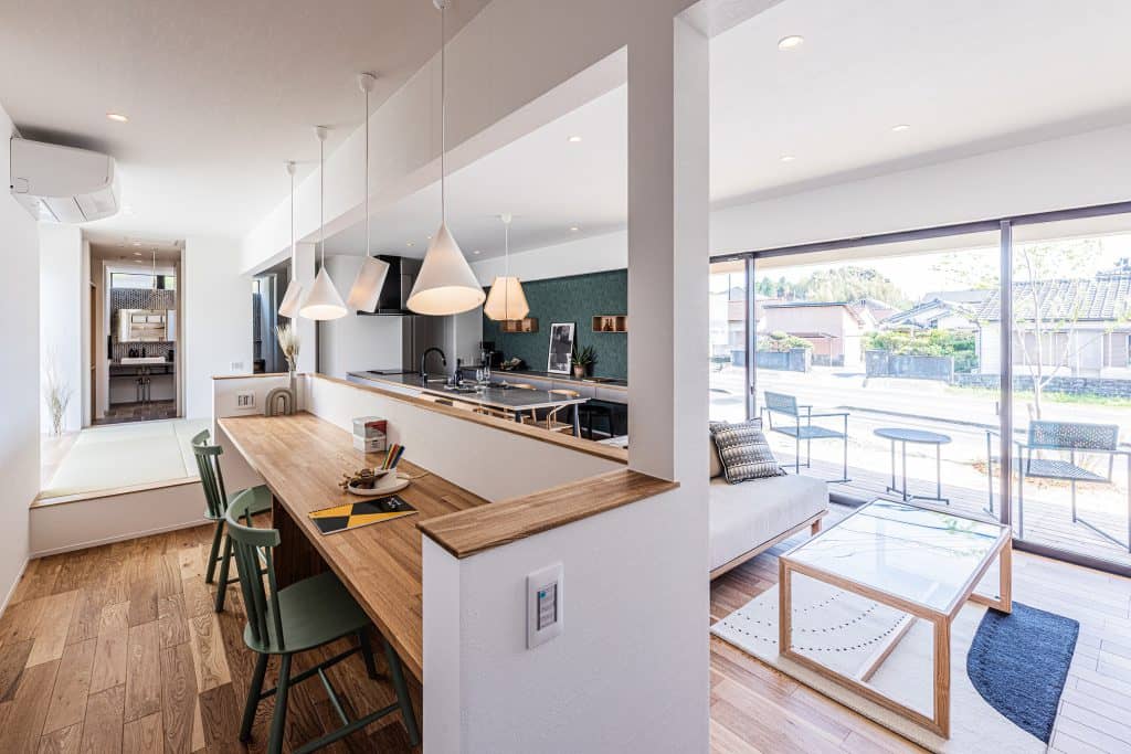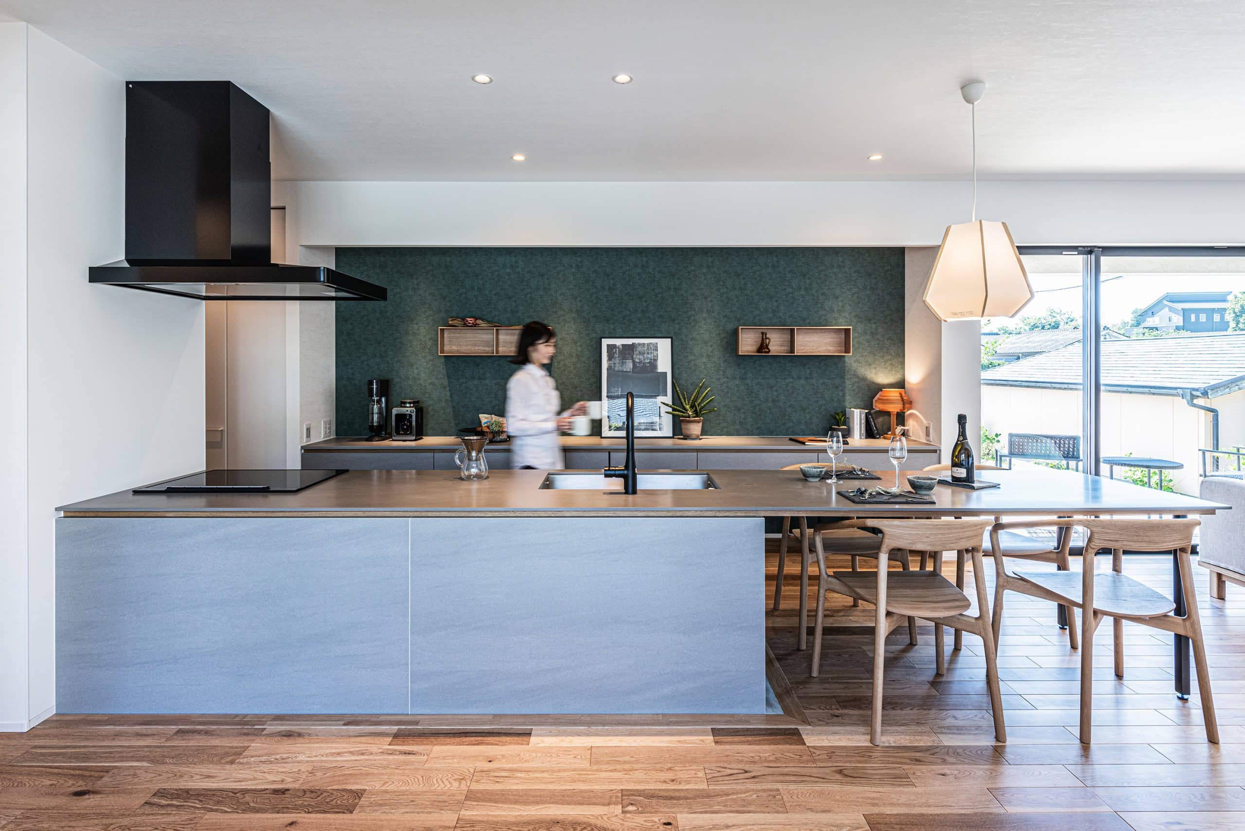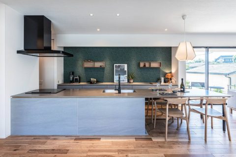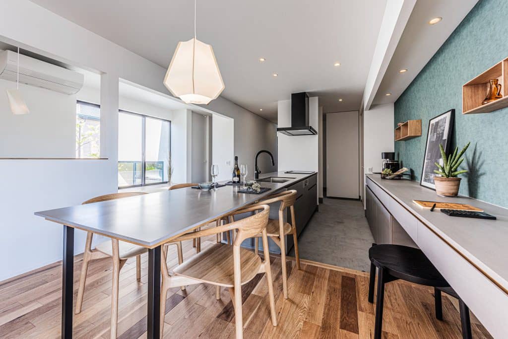 キッチンとダイニングテーブルの天端を揃えています。