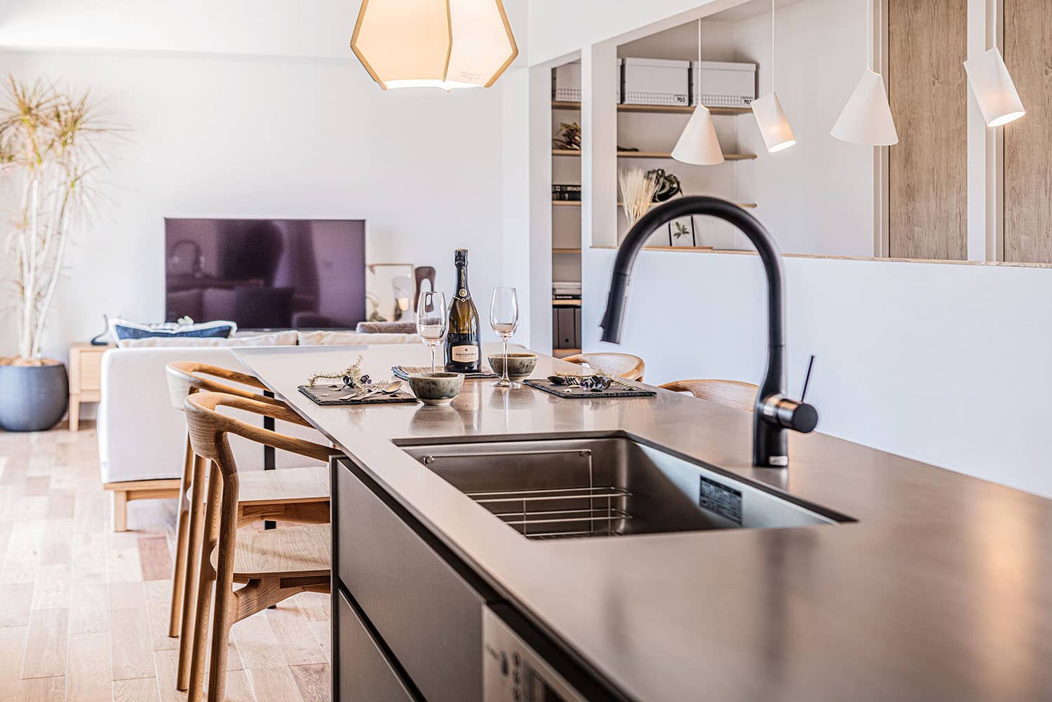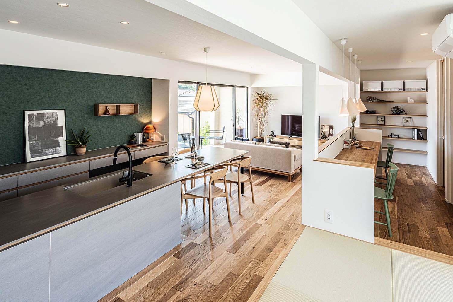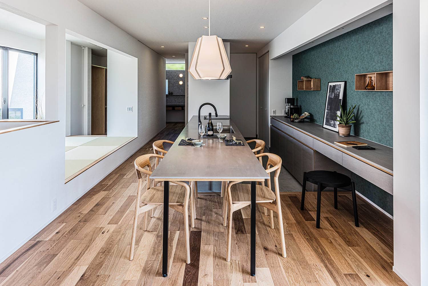 キッチンとダイニングテーブルの天端を揃えています。