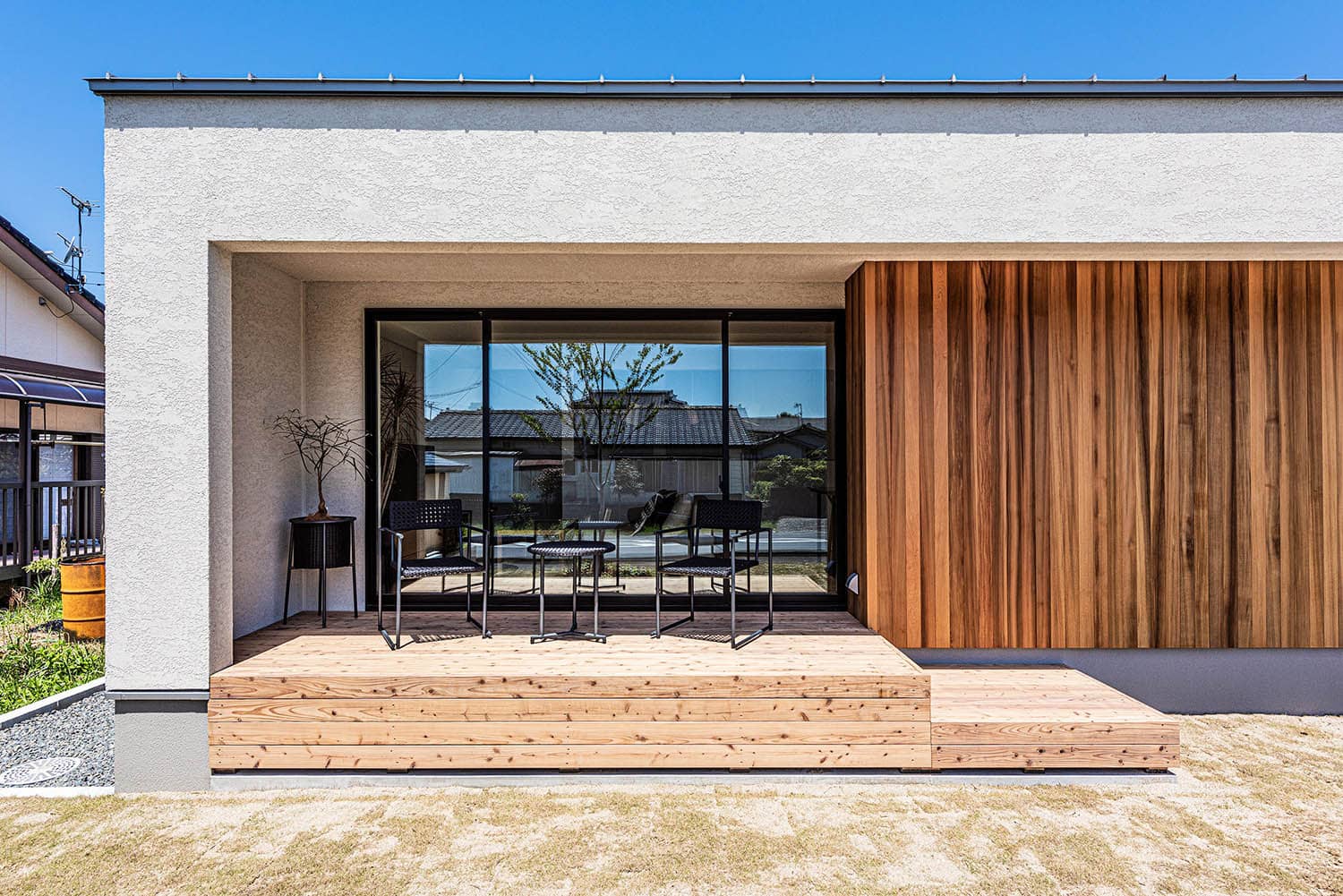陰影と周りに溶け込む端正な外観。
