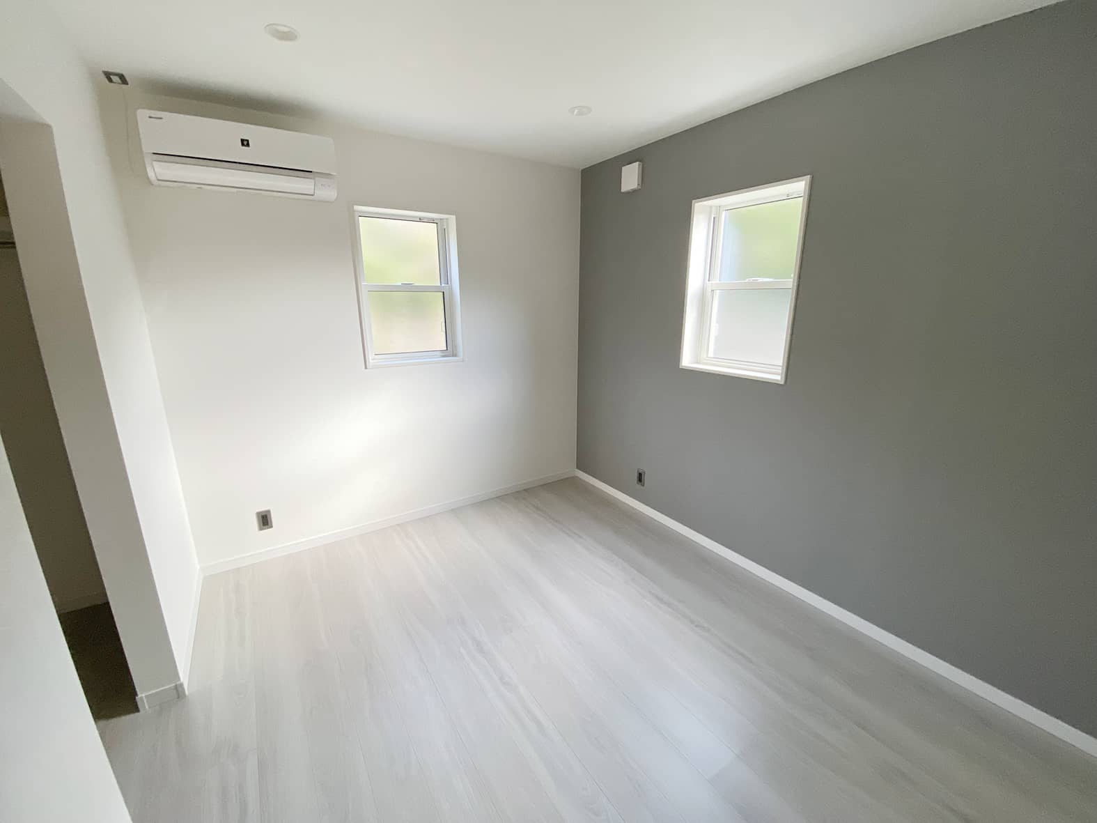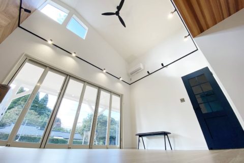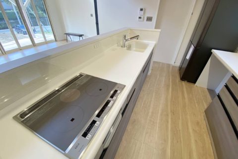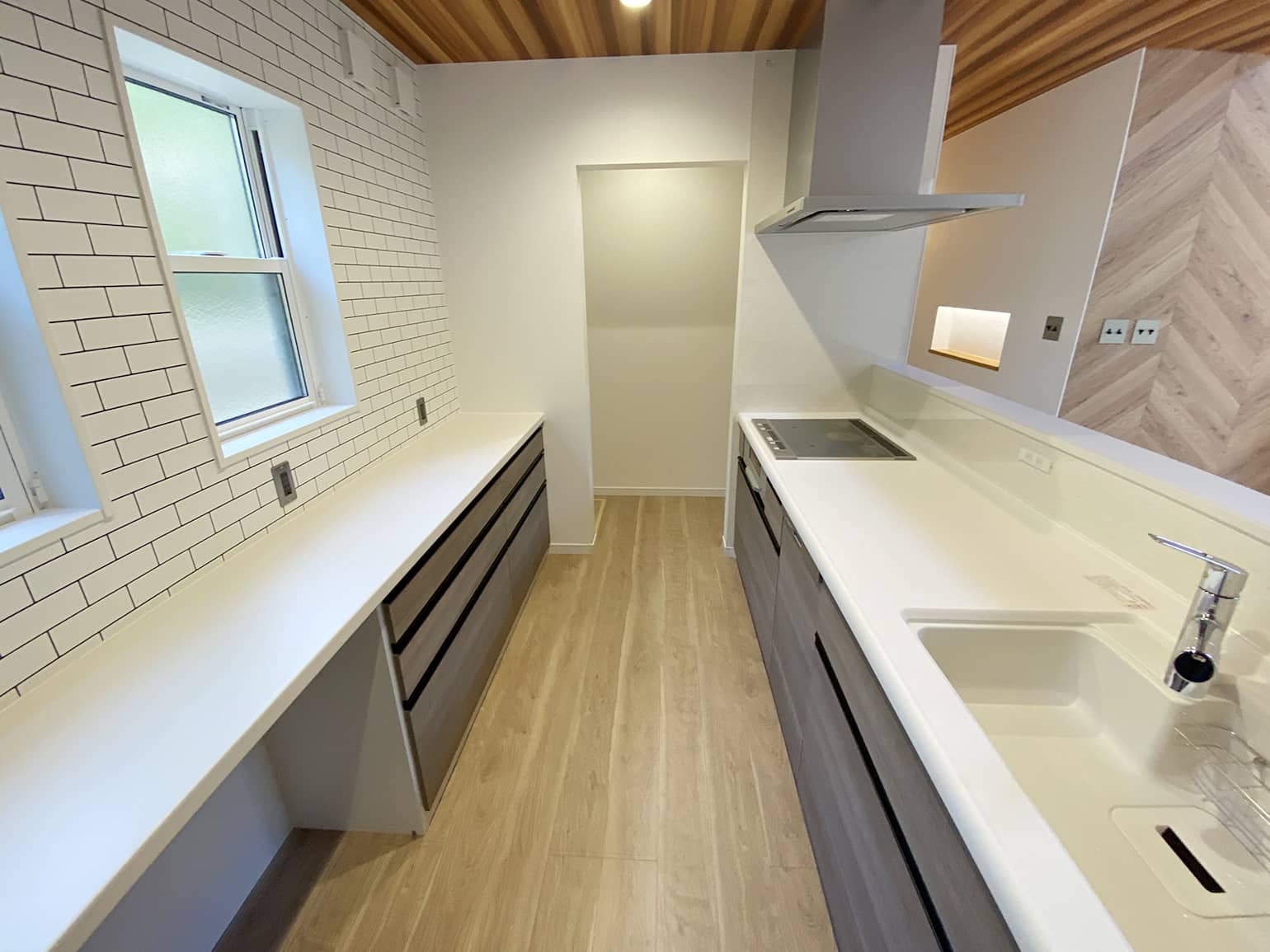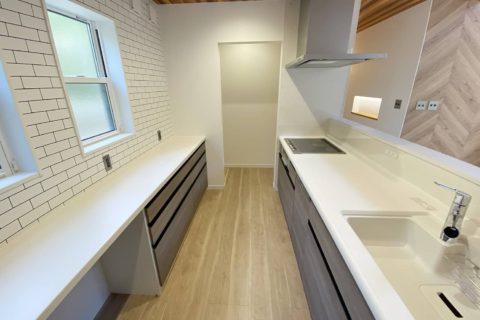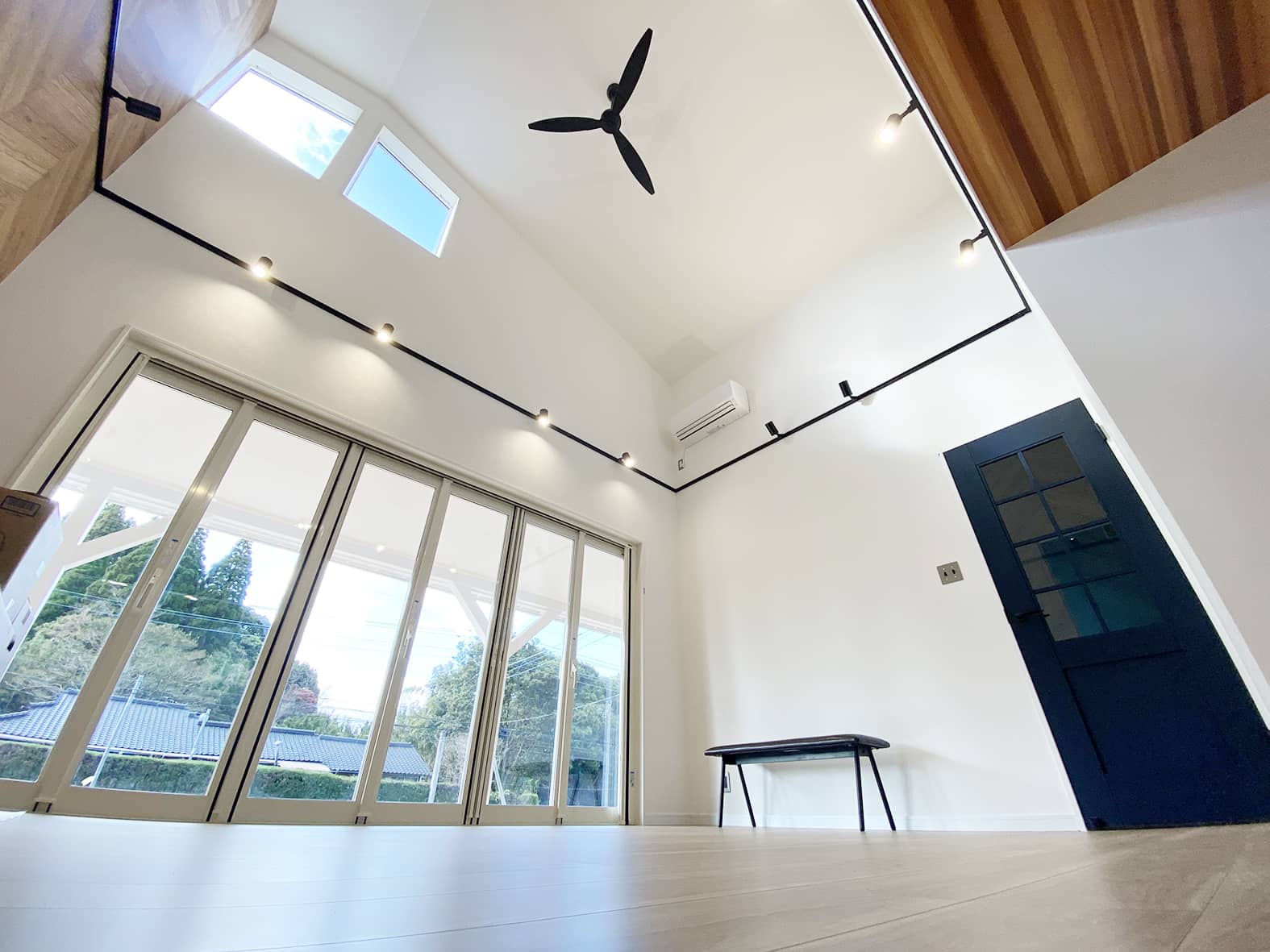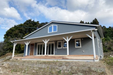 伊集院に完成したT様邸は広々とした敷地に建つカリフォルニアスタイルの家です。クロスや建材などに様々な色を使用してオシャレにまとまりました。