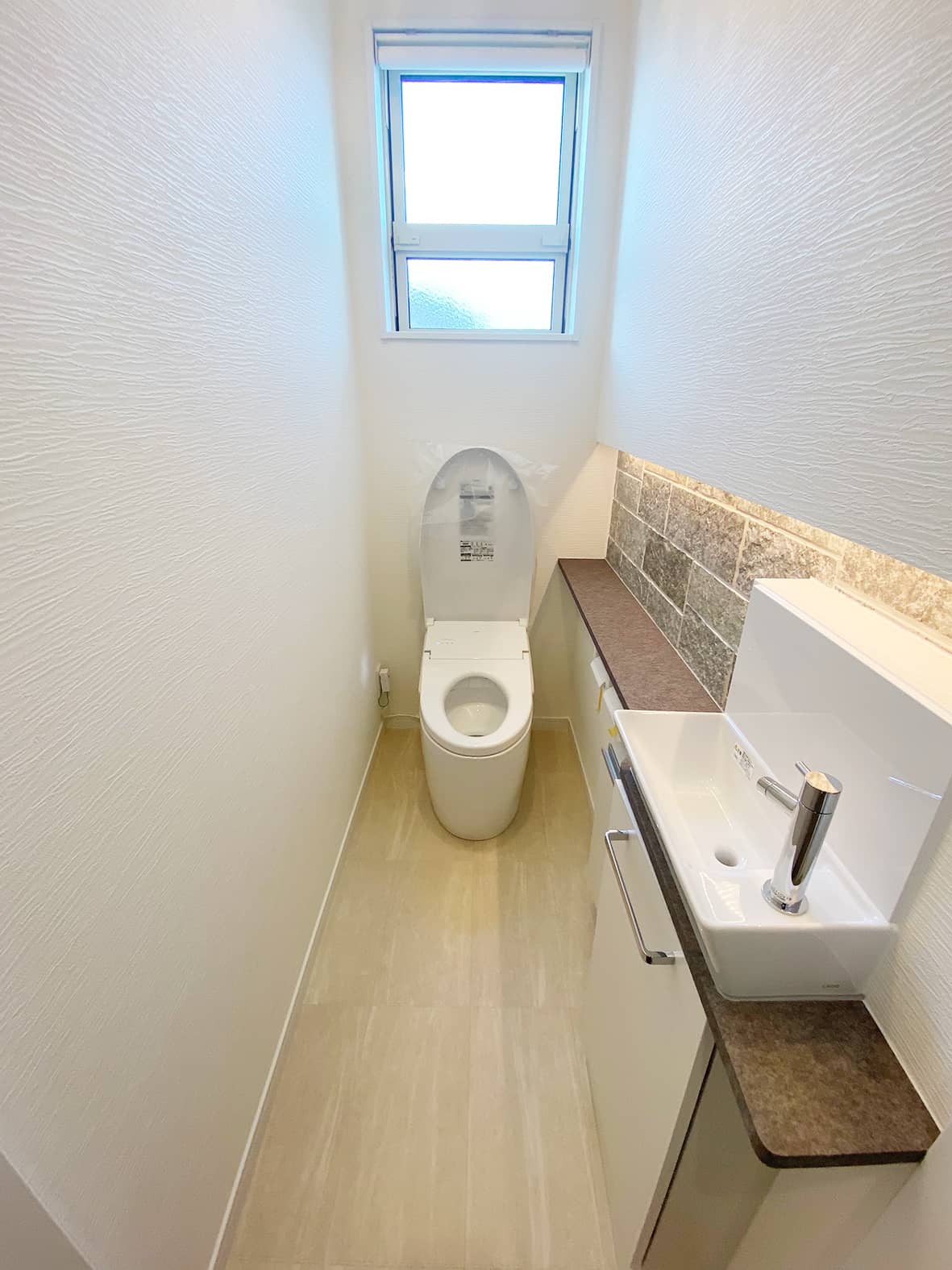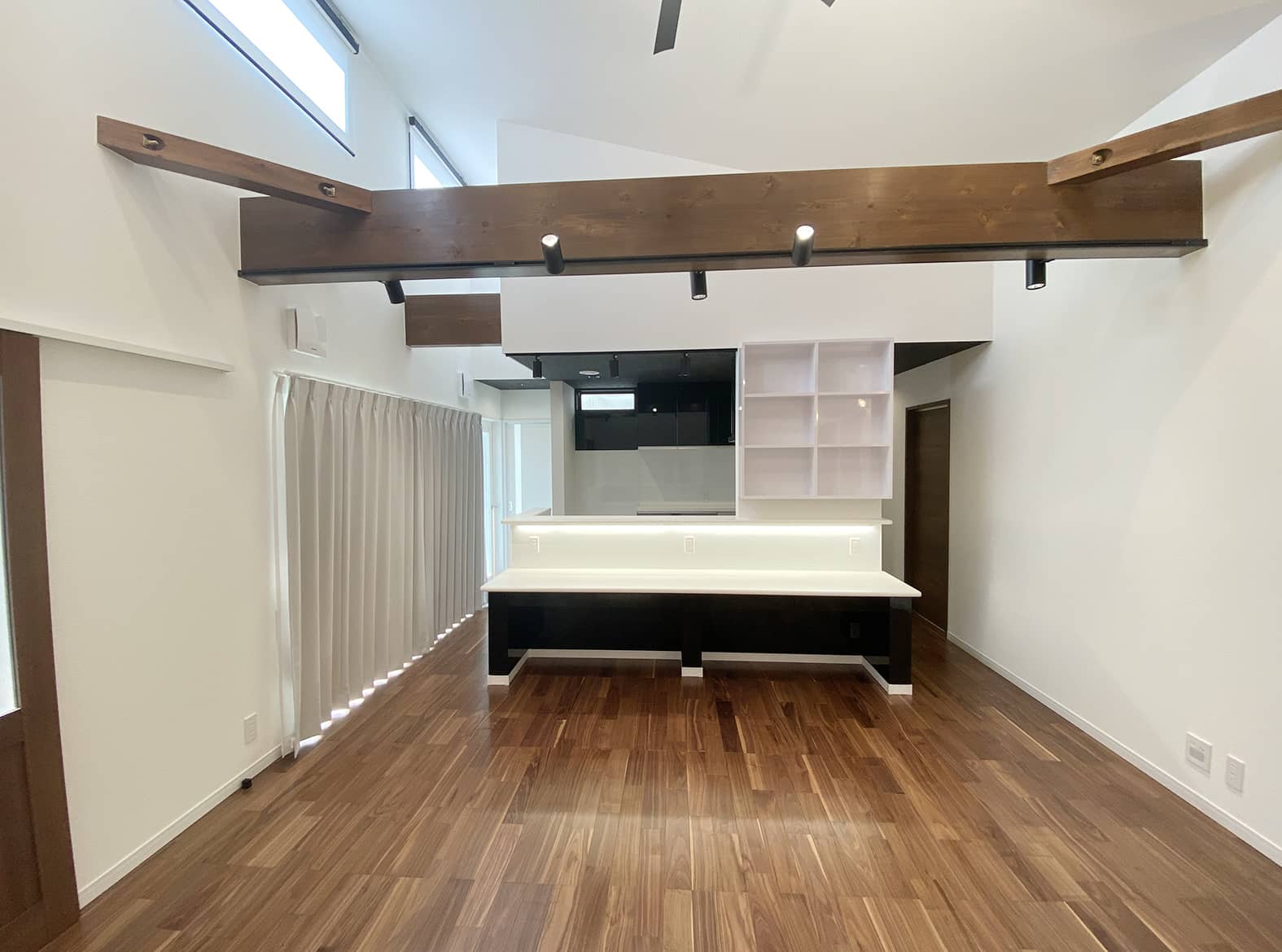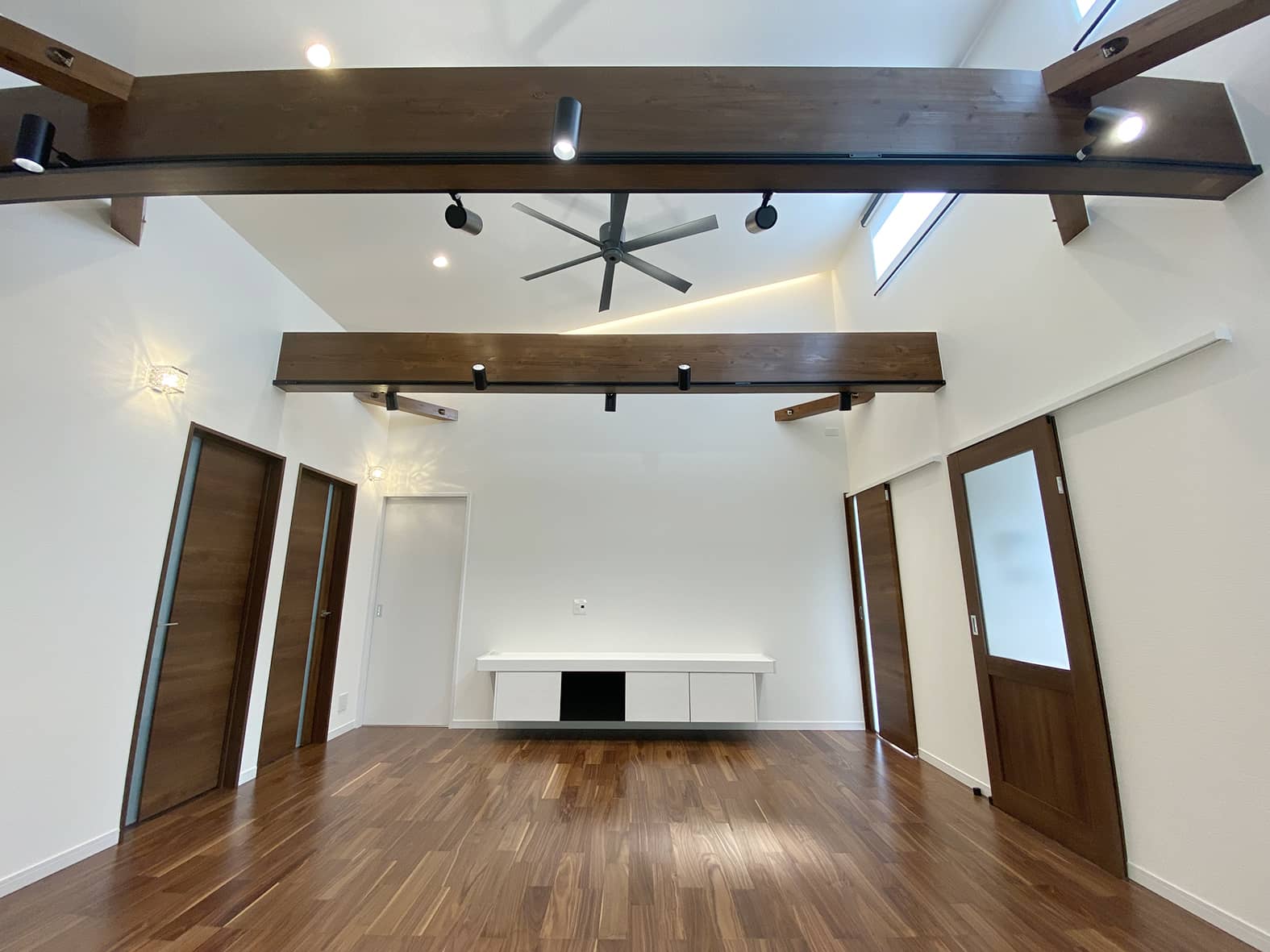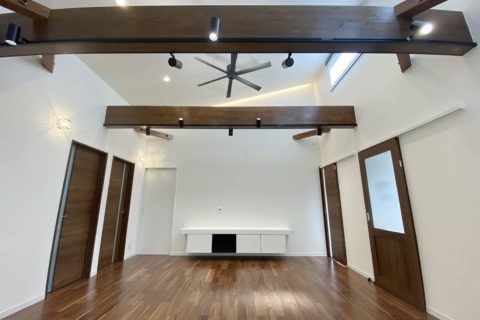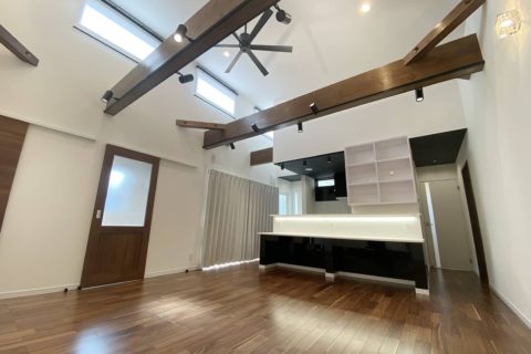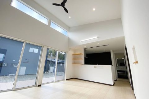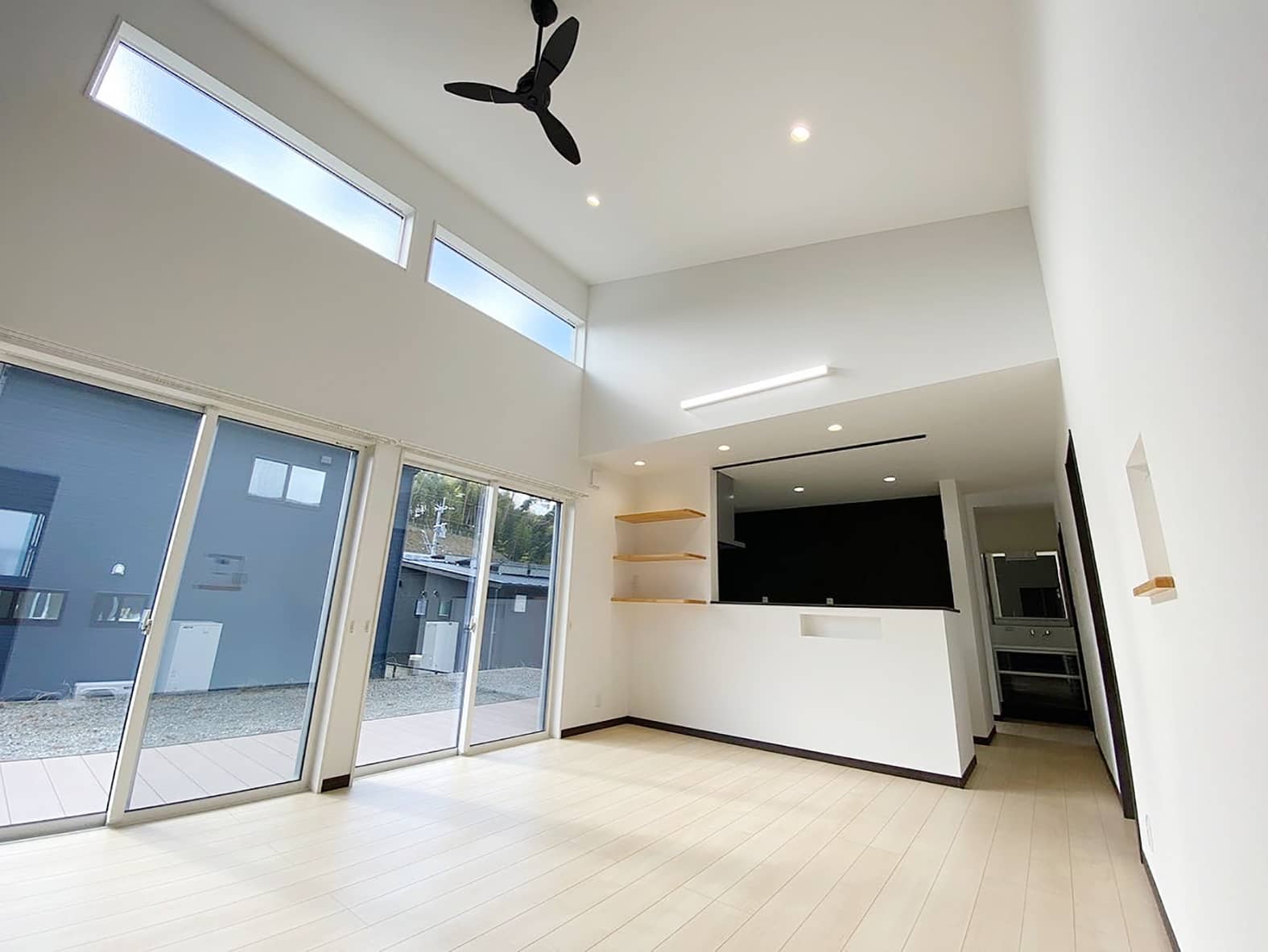 天井高のある広々としたリビングは明るく開放的な空間になりました。トイレ、風呂にも窓を設けているので明るく使用することができます。