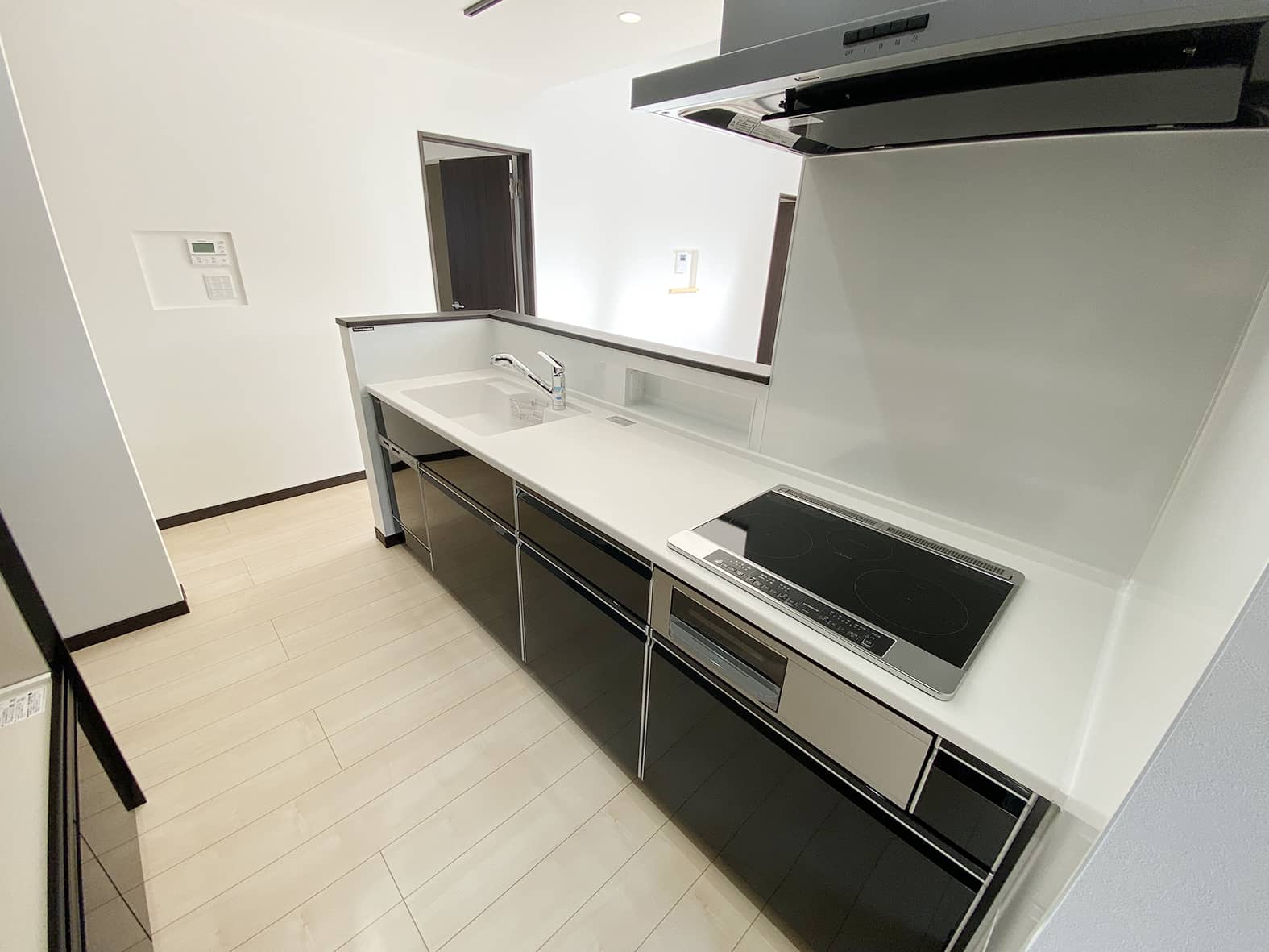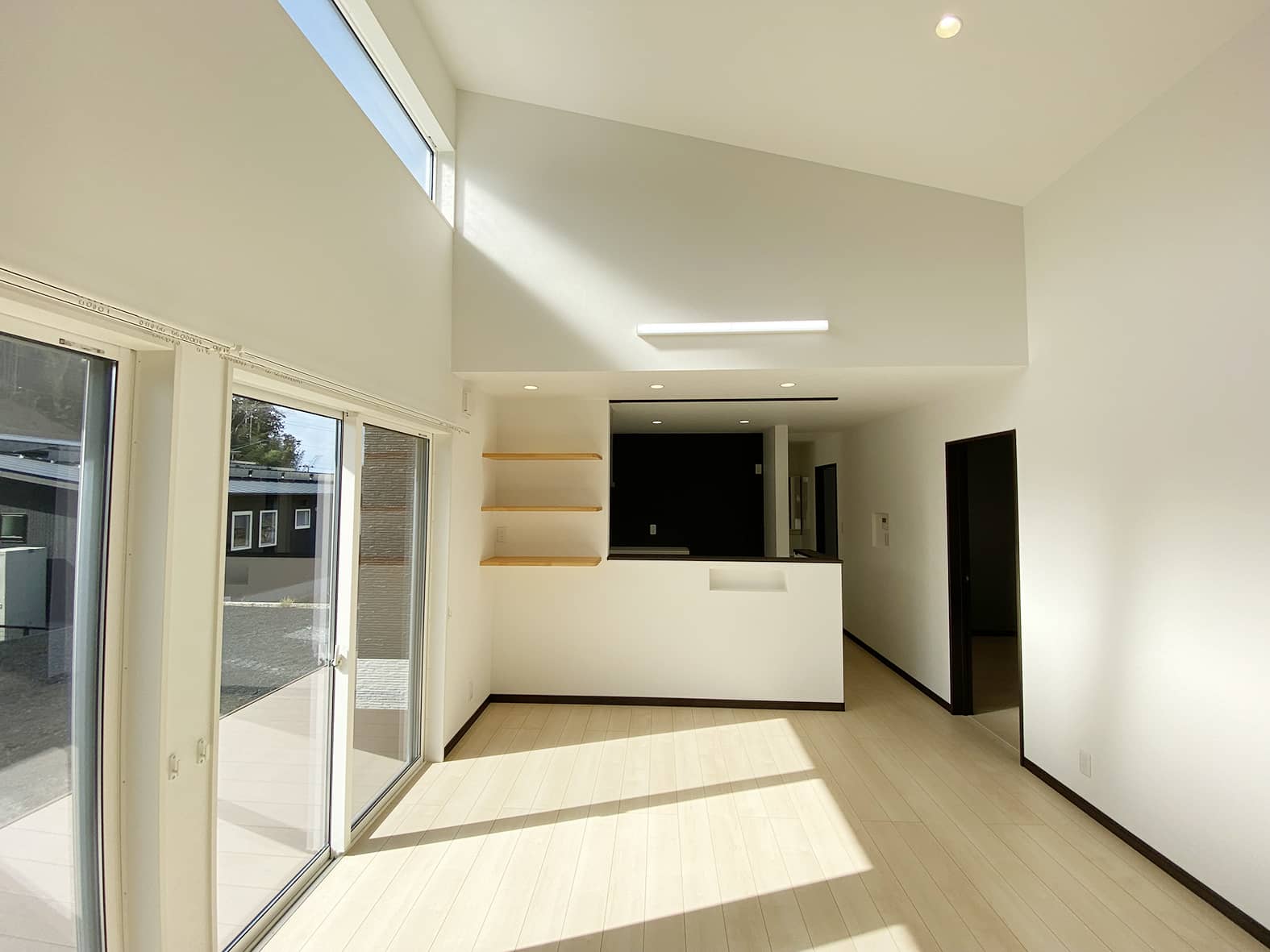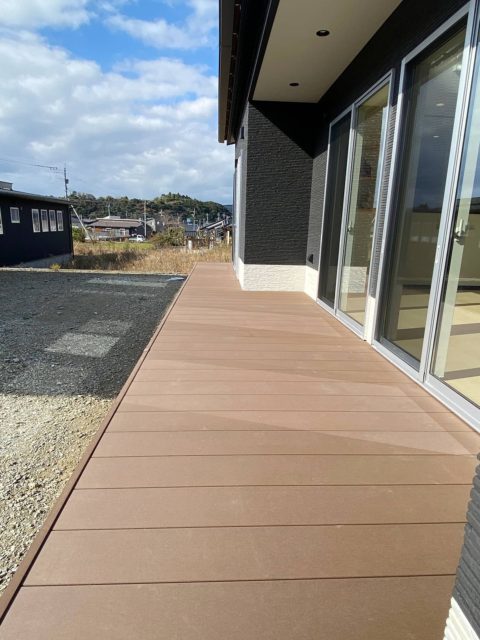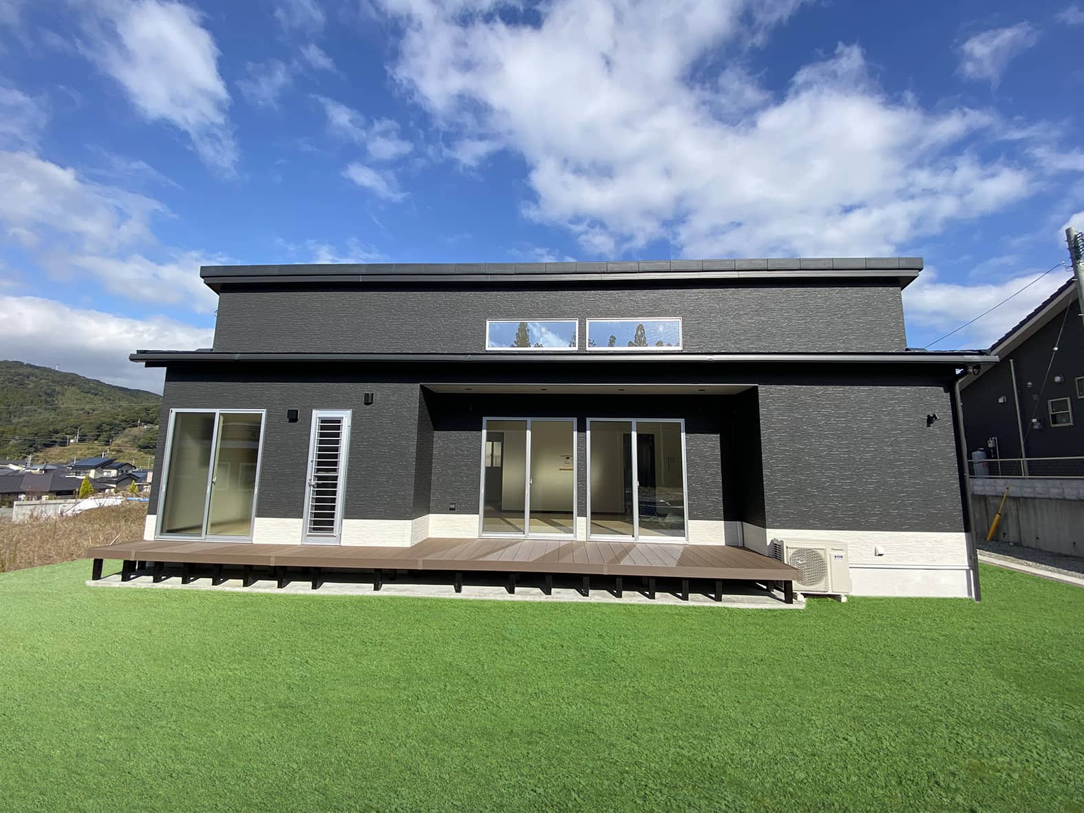 ポイントにブラックを使用しシックな雰囲気の家に仕上がりました。デッキはリビングの窓を開放することで室内と屋外の一体感を生み出します。