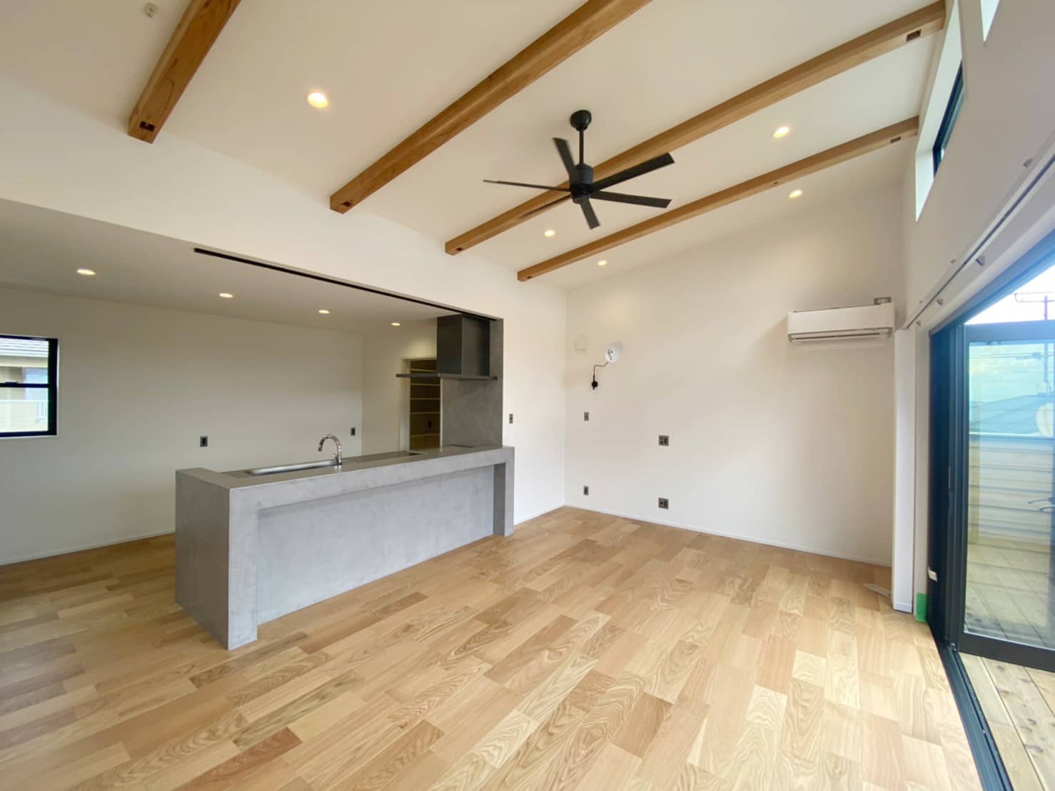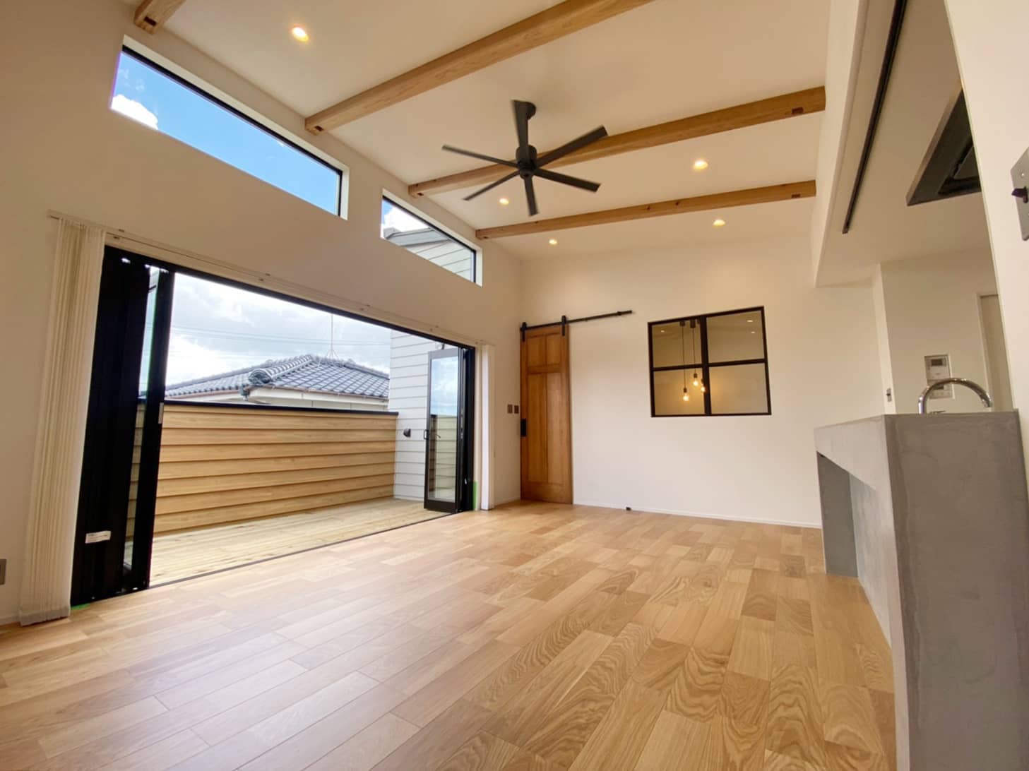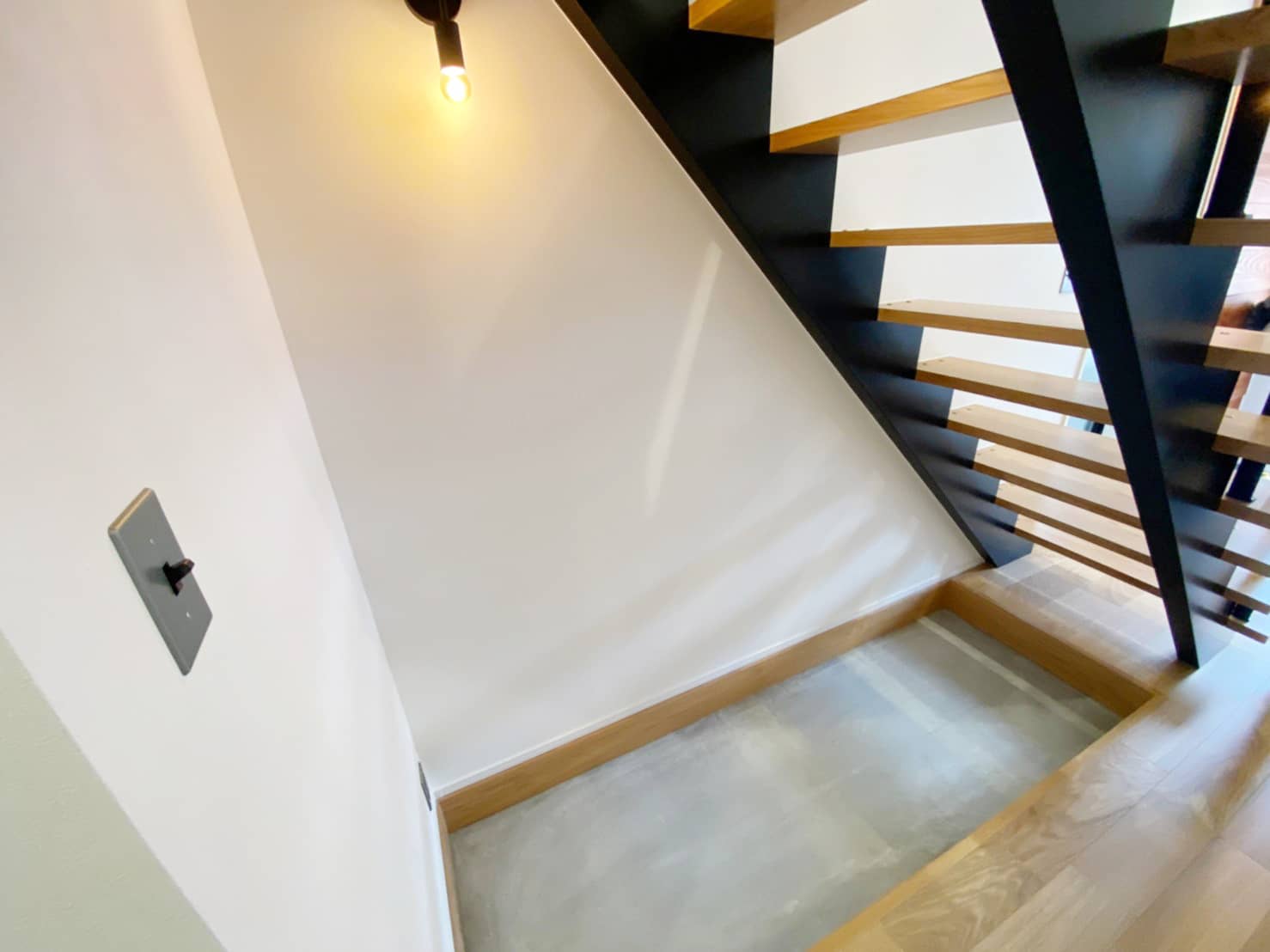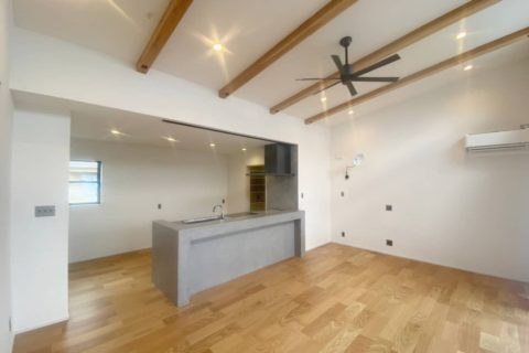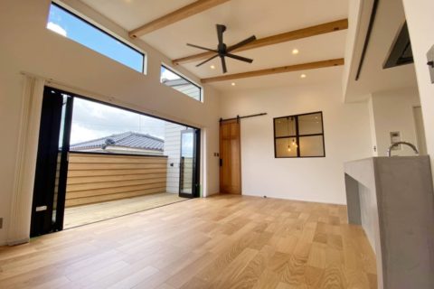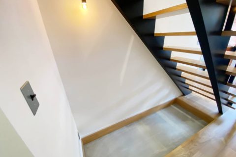 今回完成したI様邸は2階リビングが特徴的なお洒落なお家です。階段下には土間のスペースを設置。収納だけではなく多目的に利用できる空間になりました。採光に優れた水回りなどこだわりの詰まった作品に仕上がりました。