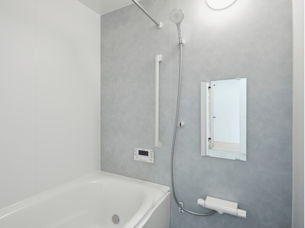 断熱浴槽は、お湯の温度を長時間キープし、最後のひとりまであたたかな入浴を楽しむことができます。さらに、浴室乾燥機が付いているため、洗濯物も干すことが可能。また、冷ヤッとしない、汚れも落としやすい床でいつも清潔な状態を保つことができます。