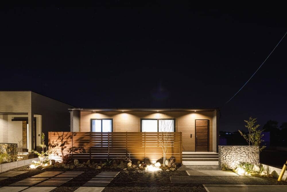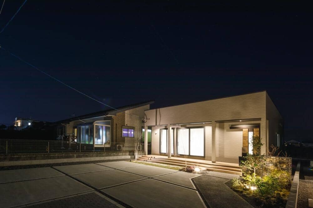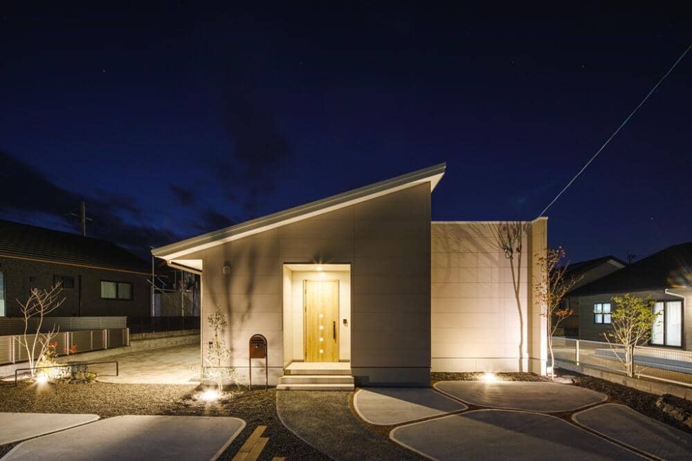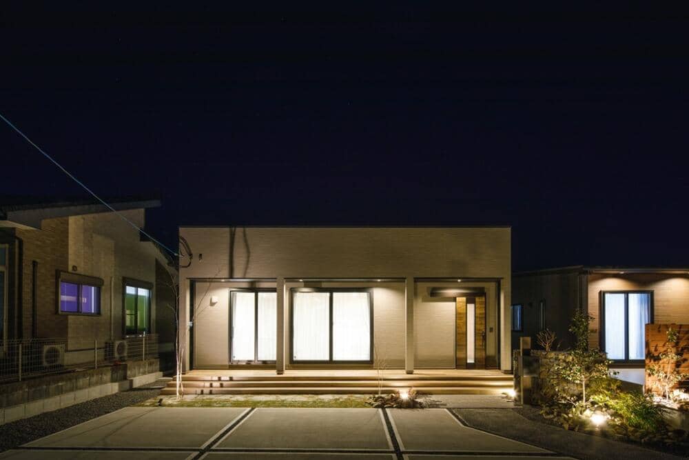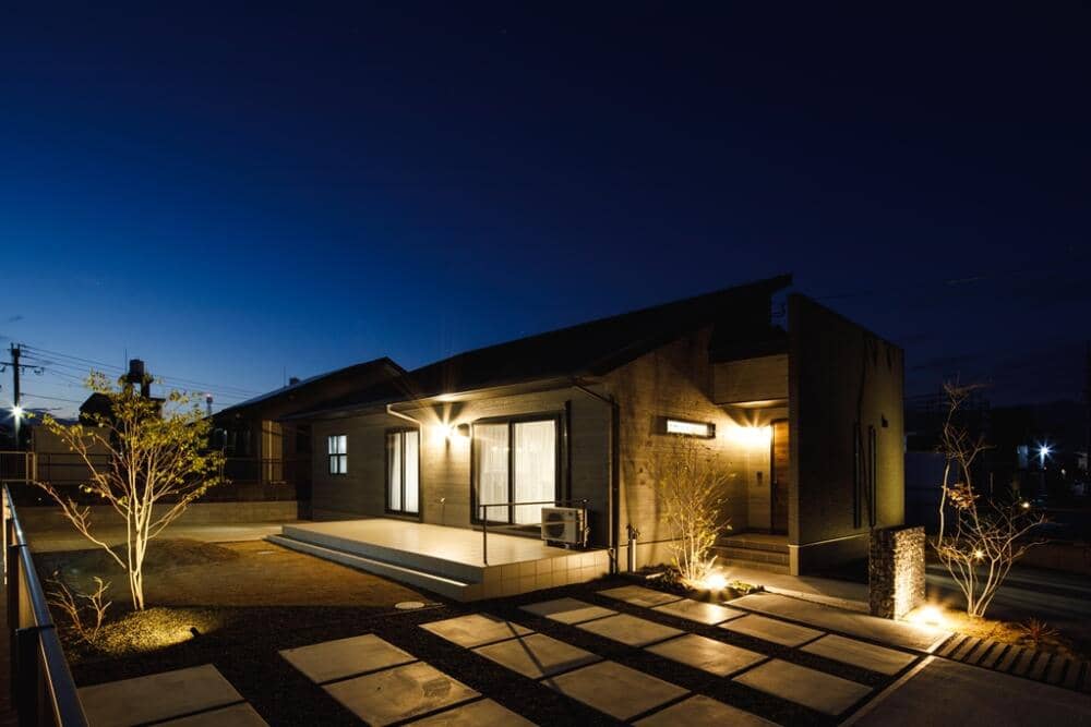 お手入れがラクな広々としたタイルテラスのある平屋。