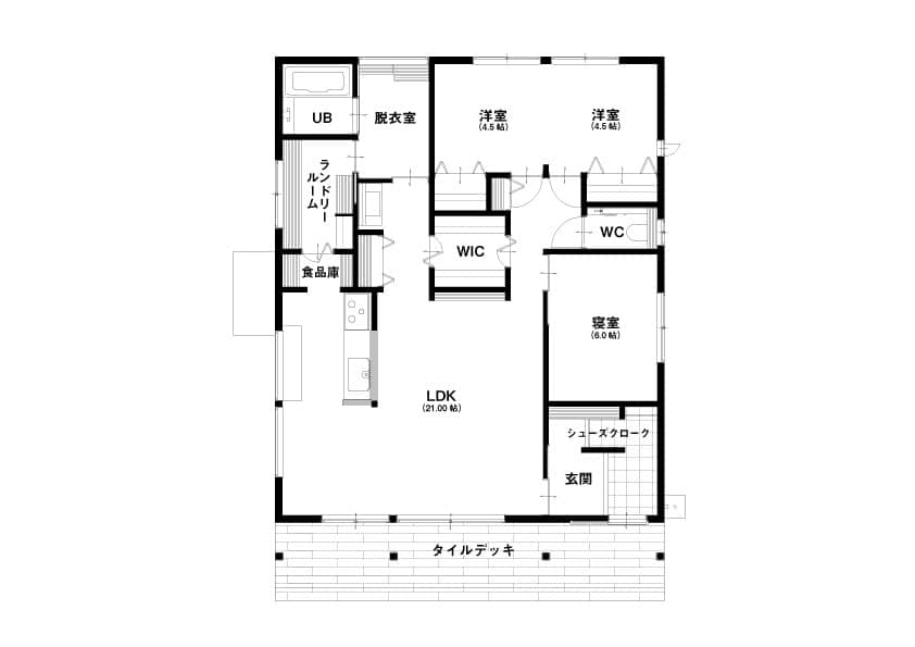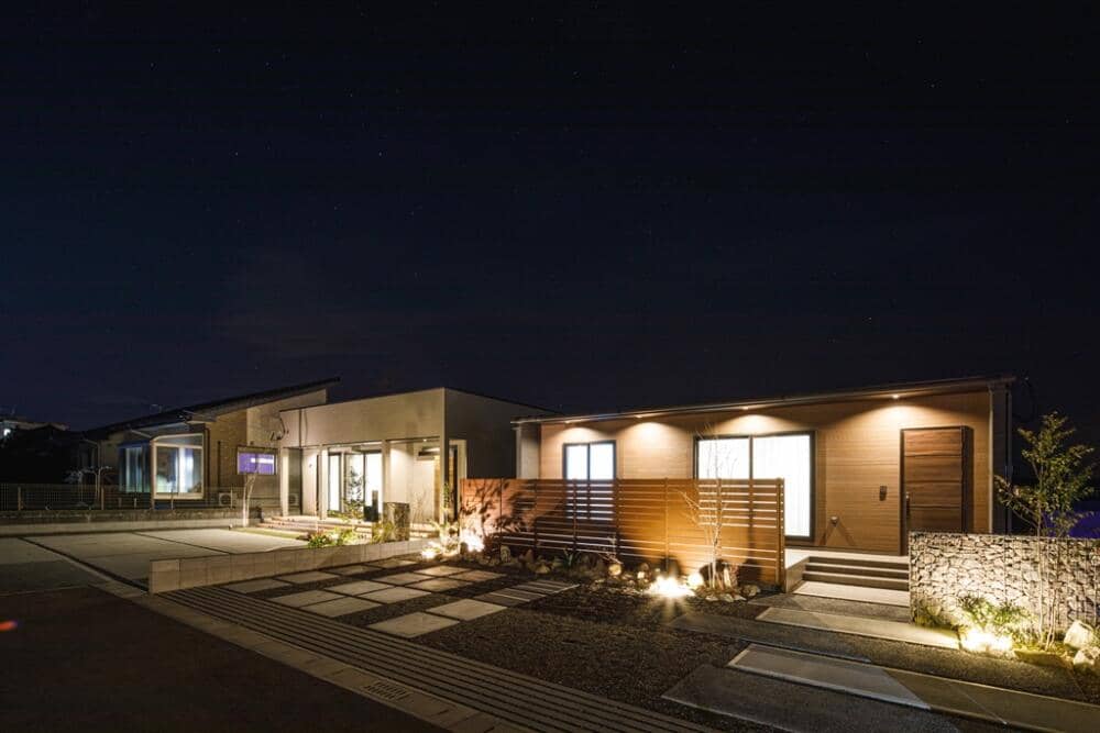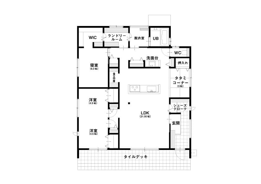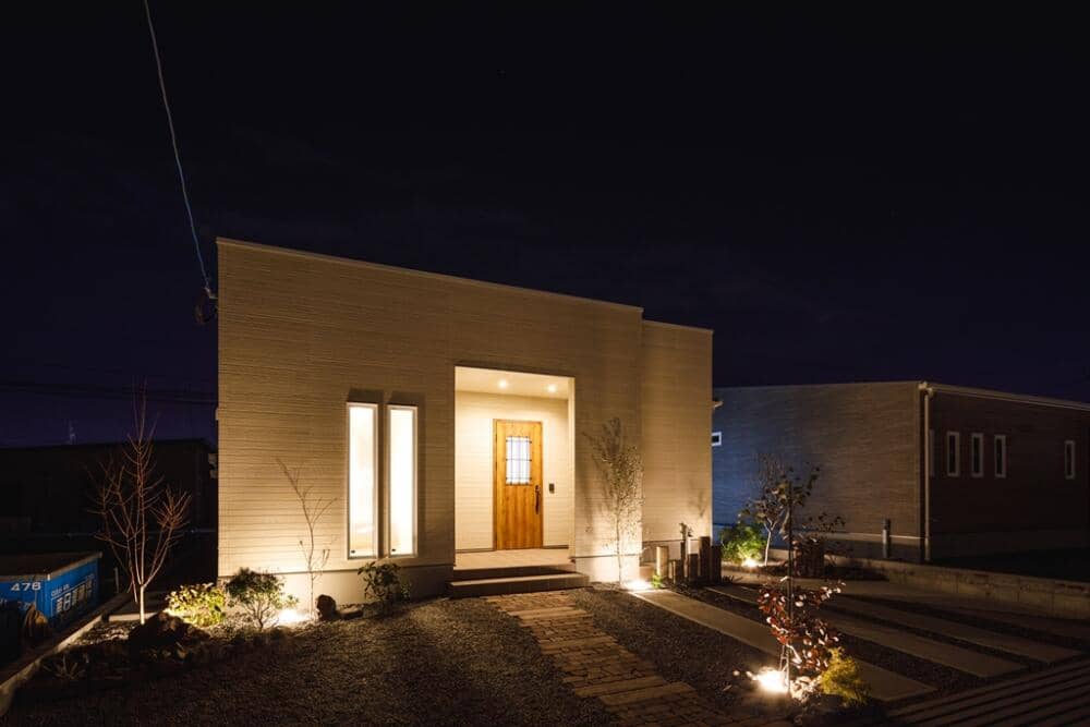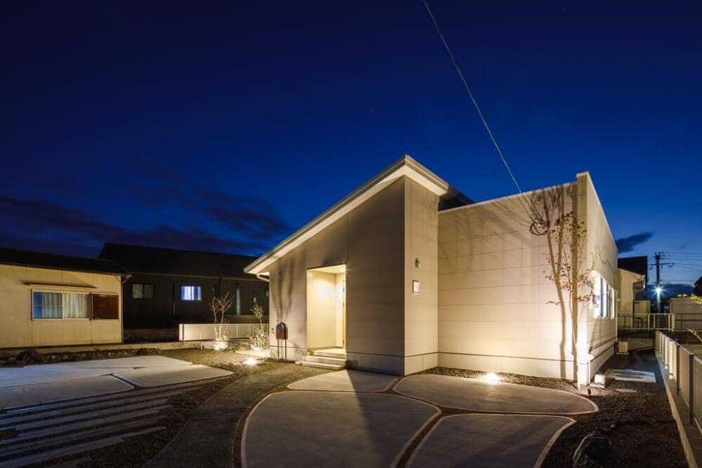 お手入れがラクな広々としたタイルテラスのある平屋。