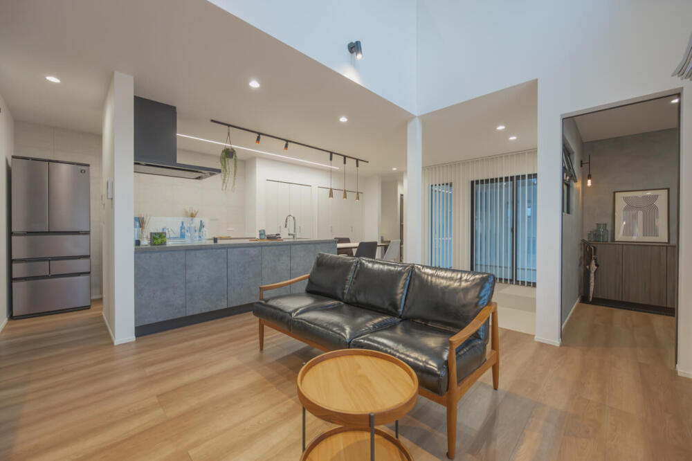 すっきりしたリビング、吹き抜けから開放感。