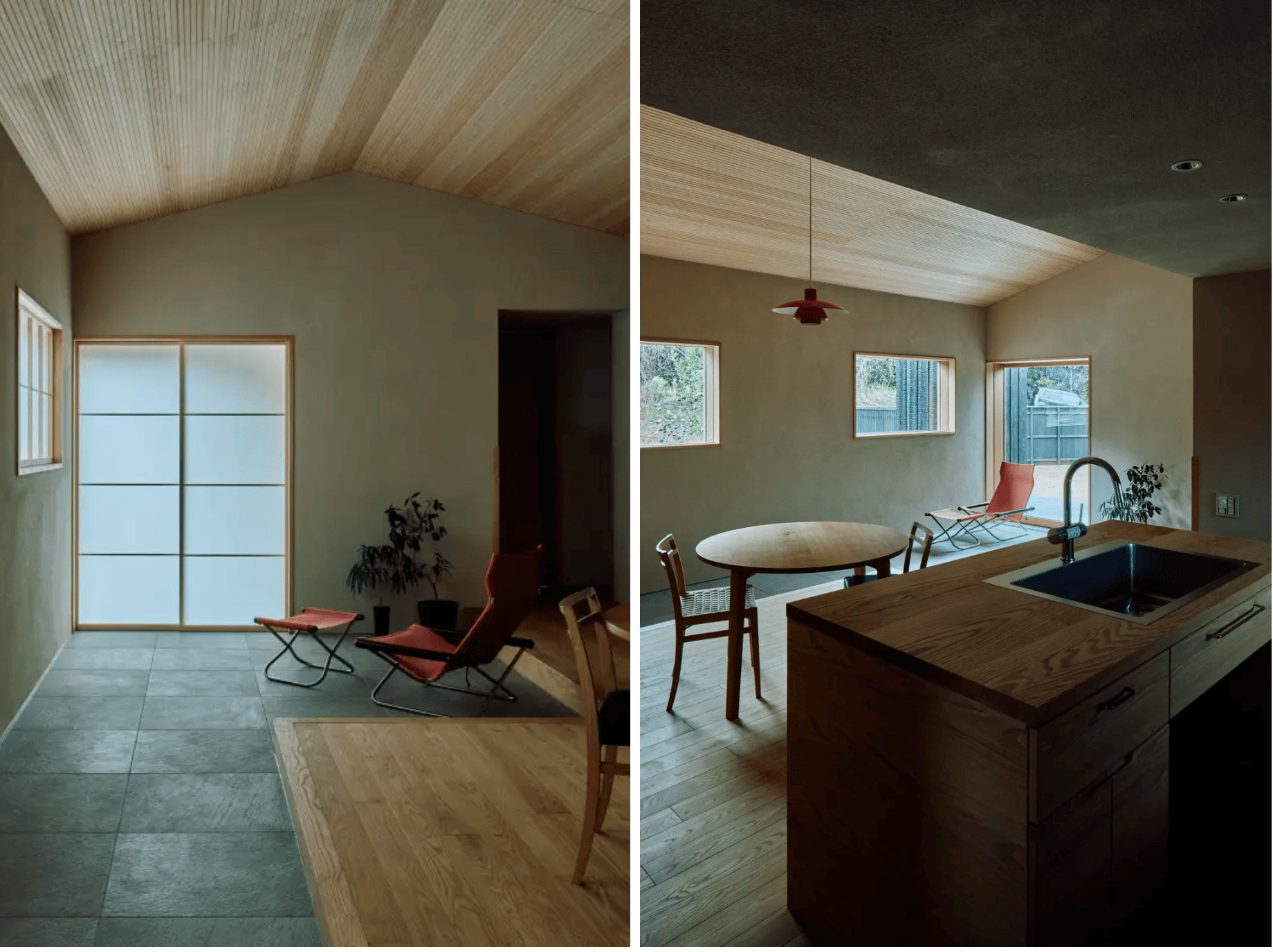 周りの景色を切りとる窓と光と影が美しい室内の塗り壁