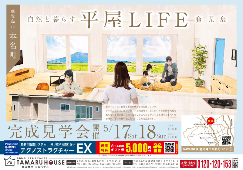 5月17.18日は鹿児島市本名町の見学会へお越しください。