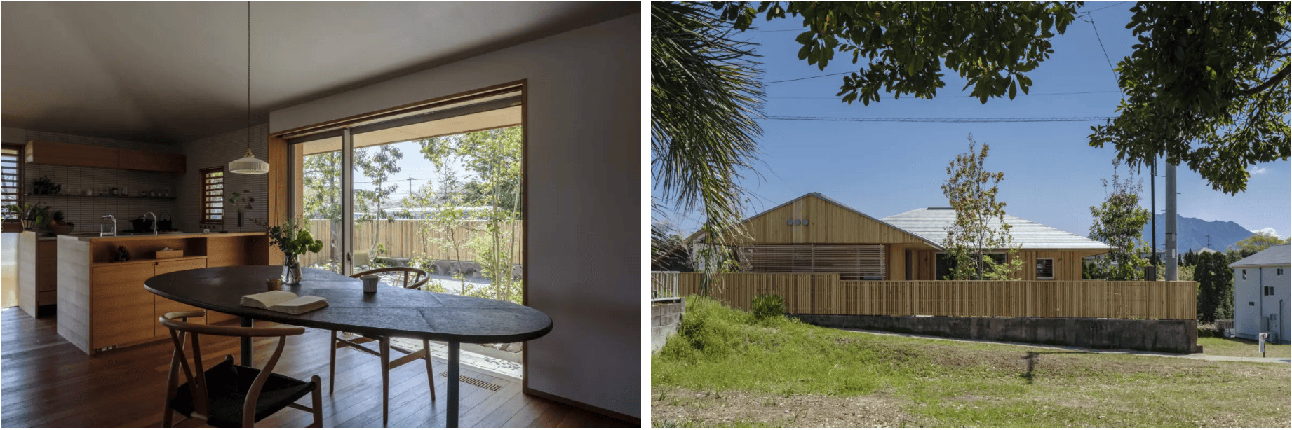 - 住宅地でも庭をゆったり設けて外での食事など楽しめる間取り