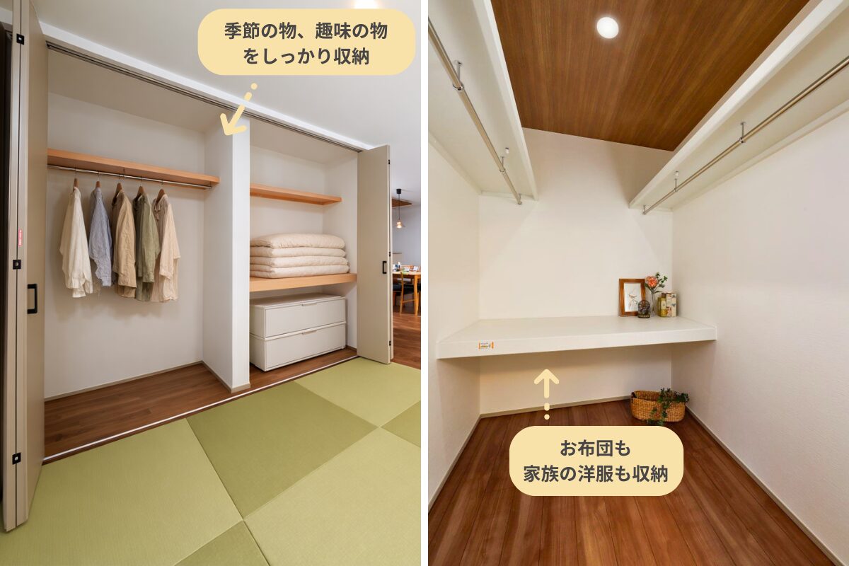 パントリーや収納スペースを適材適所に配置。